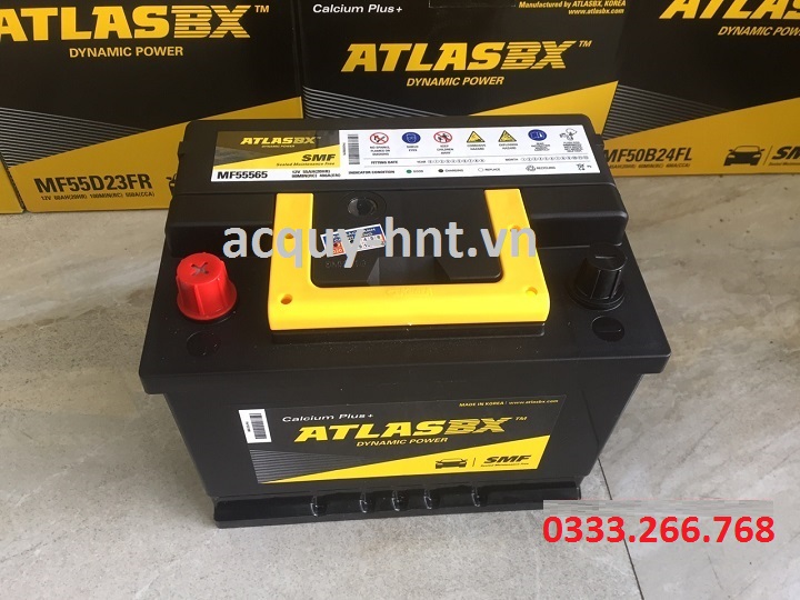 - Ắc quy AtlasBX DIN MF55565 là dòng ắc quy khô miễn bảo dưỡng, không cần bảo dưỡng khi sử dụng. Ắc quy Atlas được sản xuất tại Hàn Quốc đã xuất khẩu đi hơn 150 quốc gia khác nhau trên thế giới.